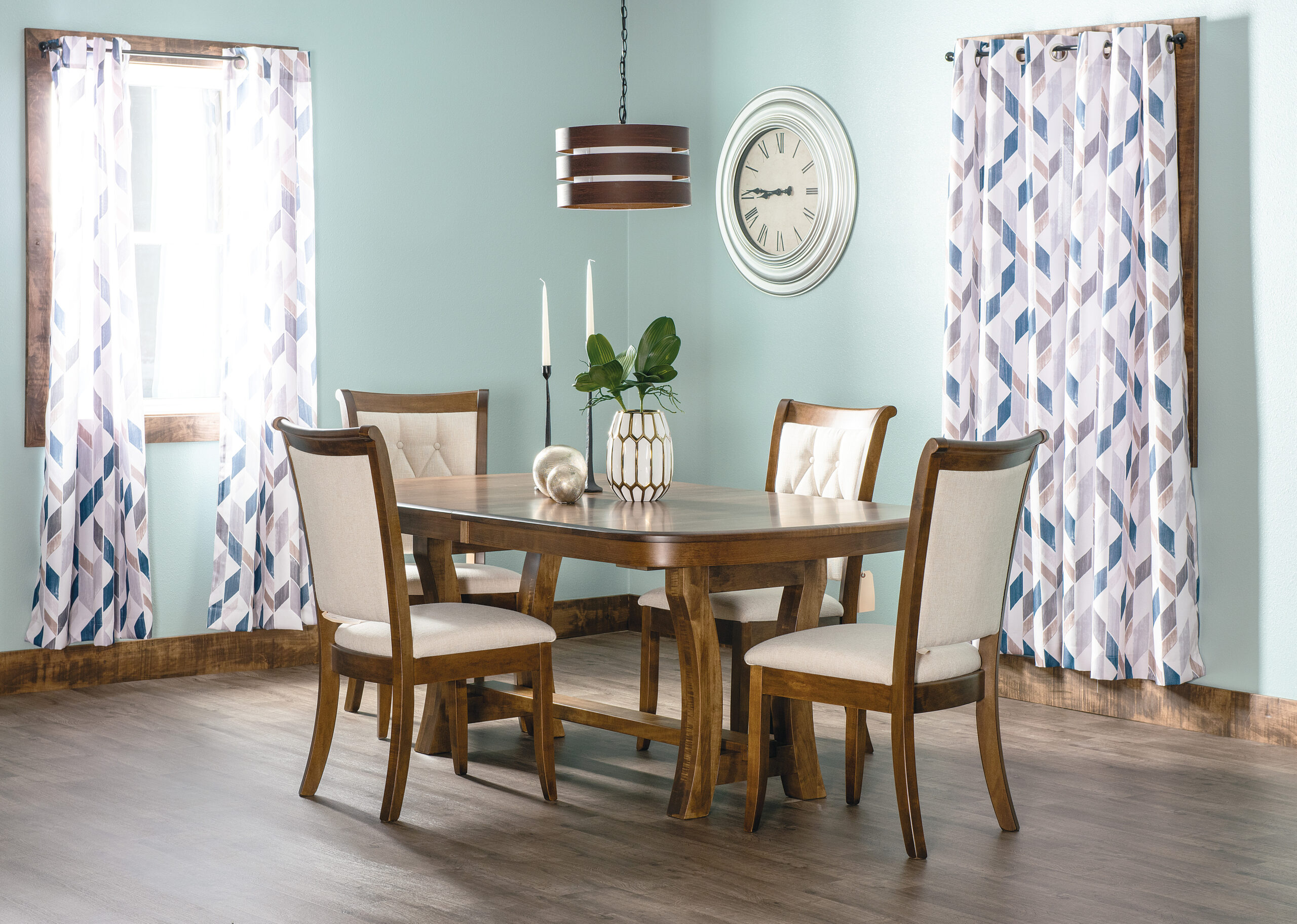 Flowing lines and an elegant silhouette elevate the traditional appeal of the Camp Hill Trestle Dining Collection.
